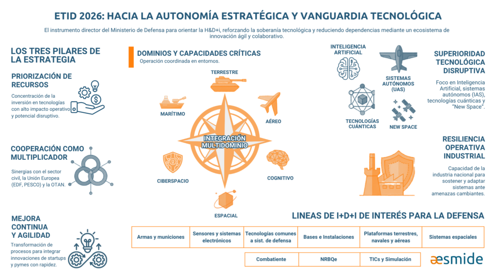 La ETID 2026 se configura como el instrumento director que guiará las actuaciones en I+D+i del Ministerio de Defensa, con el objetivo de transformar la inversión en capacidades militares efectivas y fortalecer la base industrial y tecnológica nacional.