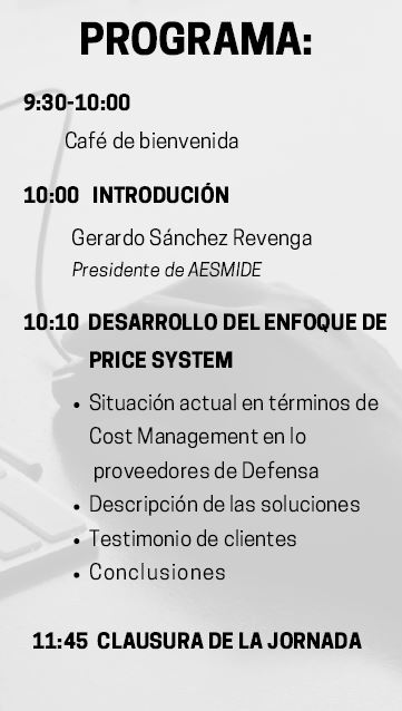 DESAYUNO PRICE por Aesmide | Nov 6, 2019 | Empresas Aesmide En el día de hoy ha tenido lugar en el Hotel Wellington un desayuno provechoso para las empresas proveedoras de Defensa. Facebook Twitter Gmail LinkedIn